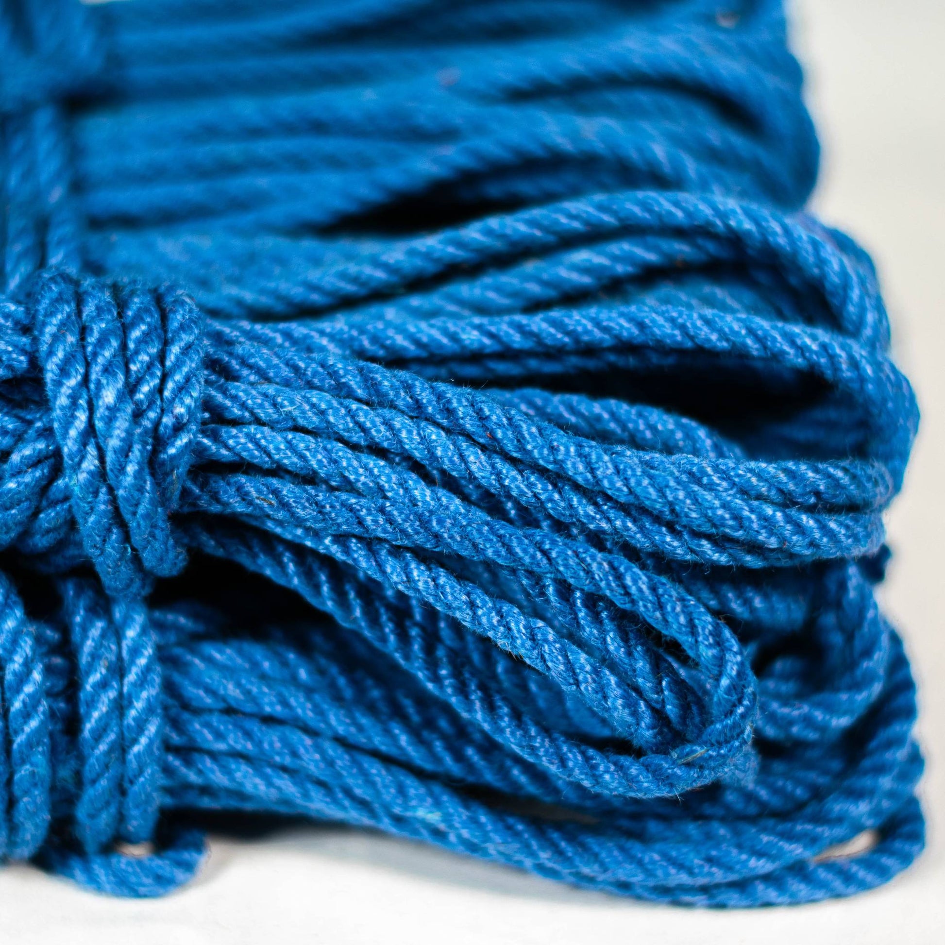 It has been treated to a smooth ready-to-use finish with a blend of jojoba and camellia oils. This rope has been rigorously tested and is proven to be robust and long-lasting. It's suitable for vegans, available in 7.5 meter lengths, and comes in a denim blue colour. Our team has pre-treated each rope to ensure it's ready for use, and the ends are finished with secured overhand knots. If taken care of properly, it'll serve you for a very long time.